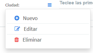 Como podemos ver en el apartado de “Ciudad” tenemos un pequeño menú desplegable que nos permite agregar, editar o eliminar una ciudad.