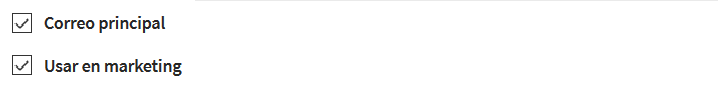 Y por último le indicamos si es el correo principal de ese contacto y de tener el permiso de el contacto marcamos también la opción de “Usar en Marketing” que hará que ese contacto se envíe a nuestra Audiencia en Mailchimp lo que permitirá enviarle campañas de correo.