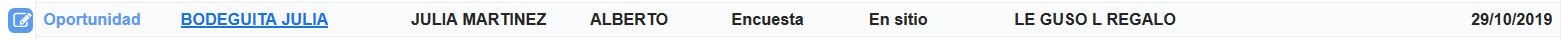 Si queremos ver el expediente de nuestra oportunidad, lo que tenemos que hacer es dar clic en las letras azules de la columna “Oportunidad” (generalmente se trata del folio de la misma). El expediente se abre en una nueva ficha.