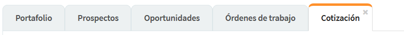 Más abajo de donde encontramos la información de nuestro prospecto, se muestran las vistas en donde podremos ver toda la información referente a esa Organización, tareas, oportunidades, seguimientos, órdenes de trabajo, cotizaciones, Etc.