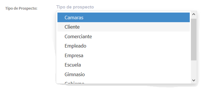 Tipo de prospecto.- En este apartado podremos especificar el tipo de prospecto que tenemos seleccionando una opción de la lista desplegable.
