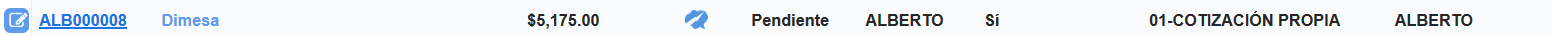 En la ventana de Cotizaciones se viene de una forma un poco diferente, ya que ahí nos mostrará el Folio que tiene nuestra cotización el cual si lo presionamos nos abrirá una nueva ficha con cotización en modo edición para modificarla, enviarla, cancelarla, etc.