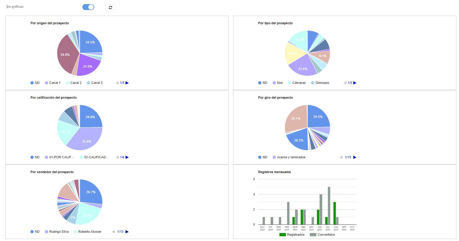 También desde la vista de Prospectos y Clientes vas a poder encontrar unas gráficas que te van a ayudar a llevar mejor control de tus métricas.