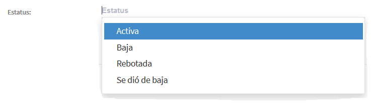 Segundo tendremos una lista desplegable preguntándonos el estatus de la cuenta la cual seleccionaremos activa.