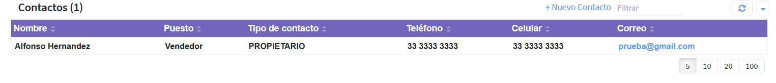 Ya hecho esto podremos ver una página como la siguiente en donde tendremos la información que hemos agregado anteriormente de nuestro prospecto.