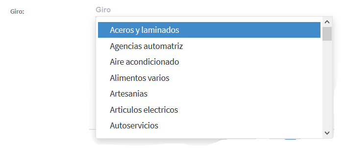 Giro.- En este apartado, tal cual lo dice, elegiremos el giro empresarial que tiene nuestro prospecto que estamos agregando.