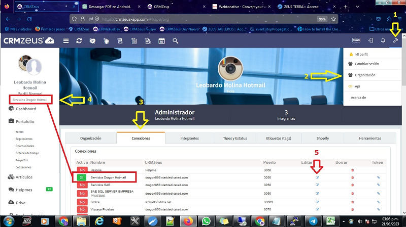 5.- Una vez ubicada la conexión, hacer clic en el botón de “Editar”.