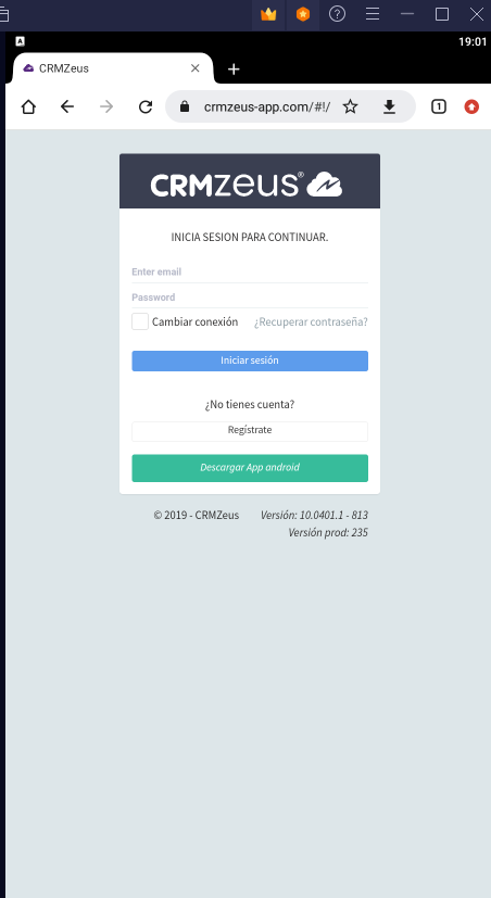 Tienes que buscar y acceder en el navegador a https://crmzeus-app.com o https://crmzeus-app.mx , según sea el caso (si no sabes que servidor te corresponde, pregunta a tu distribuidor o envíanos un Telegram .