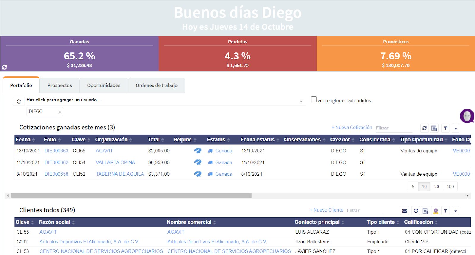 - Dashboard: en donde tenemos las gráficas y los datos de los movimientos que hemos hecho en nuestra empresa. Esta información la encontramos también en Zeus Tableros.