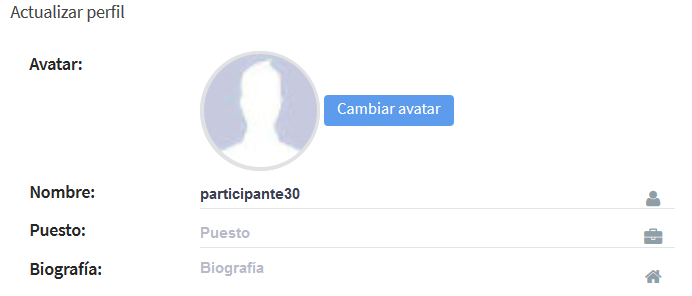 Primero nos da opción de agregar una imagen de usuario dando clic en el botón “Cambiar avatar” y más abajo podremos modificar nuestro nombre de usuario, agregar el nombre de nuestro puesto y si lo deseas una descripción tuya.