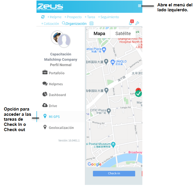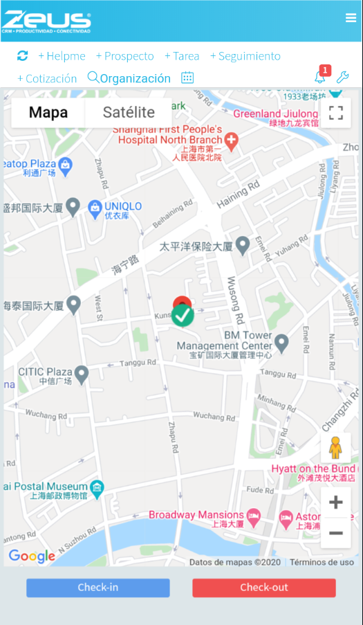 Check-in: Marca la llegada a un establecimiento, con un cliente o con un prospecto.