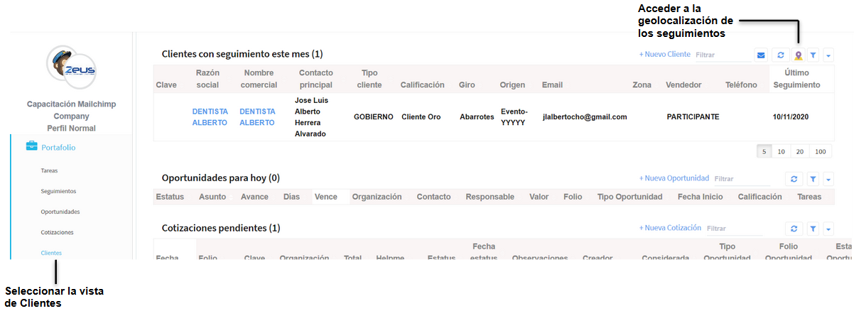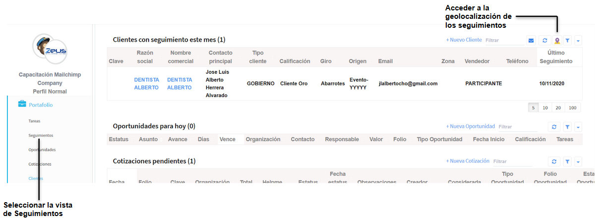: Con este botón podrás ver los seguimientos mostrados en un mapa según su localización.