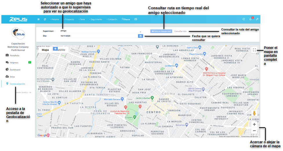La geolocalización se utiliza para darle seguimiento a la fuerza de ventas, es decir conocer donde está el vendedor y la ruta que este ha seguido durante el día. Cuando el vendedor llegue ya sea a visitar a un cliente, cobrar o entregar documentos tiene que realizar un check in a la hora de entrada y un check out a la hora que se retira, de esta manera se puede administrar y controlar el tiempo. La geolocalización funciona gracias a la app para móvil de Kontrolya CRM con la cual se pueden hacer revisiones a la ruta del vendedor ya sea por una fecha en especifica o en tiempo real.