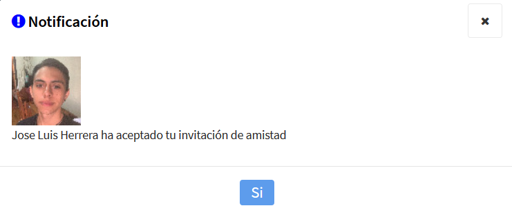 Al usuario administrador le aparece el mensaje que el otro usuario aceptó la invitación.
