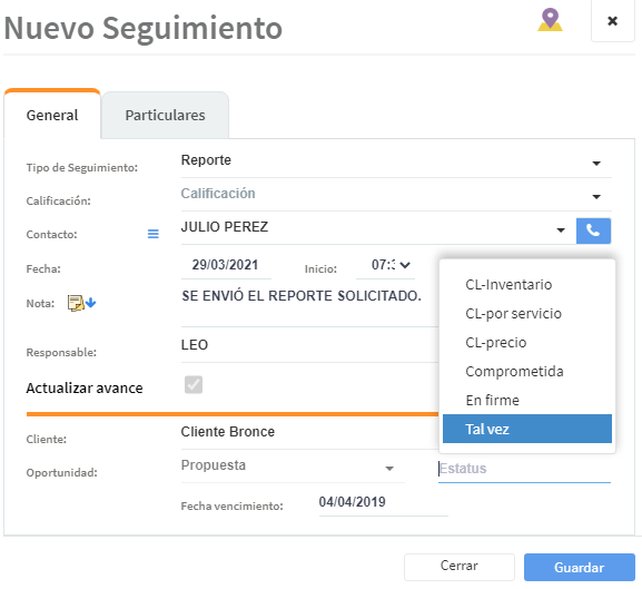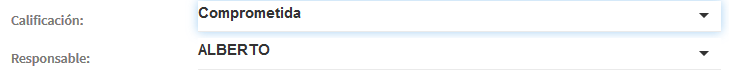 Solo queda elegir una Calificación y el responsable de esta Oportunidad.