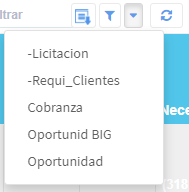 Filtro de tipos de Oportunidad: nos permite seleccionar el tipo de oportunidad de la lista de tipos de las mismas que se han configurado.