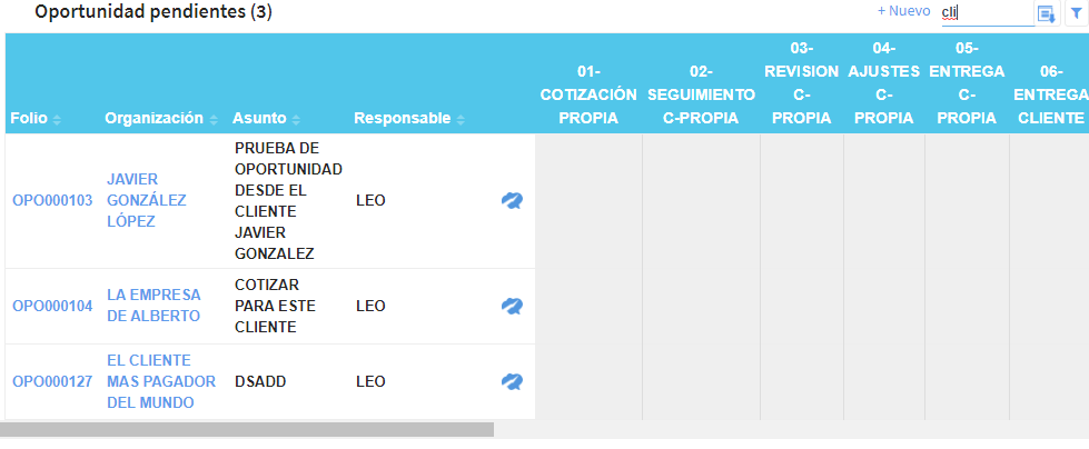 Hacer clic en el “Folio” de la oportunidad para abrir el expediente de la misma.