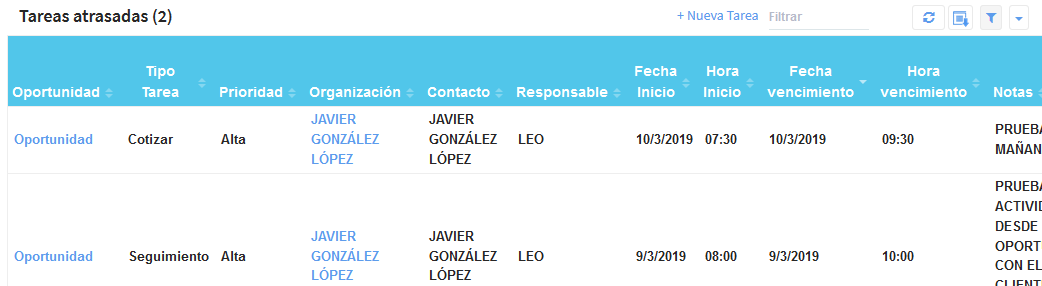 (Abrir el expediente de un cliente y de una oportunidad desde los links en las columnas y revisar el contenido)