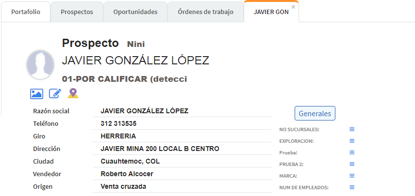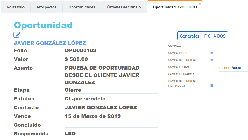 (Abrir el expediente de un cliente y de una oportunidad desde los links en las columnas de la vista Oportunidades y revisar el contenido)