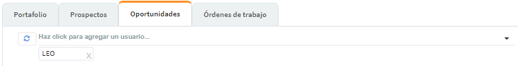 Agregar usuario: nos permite ver las Oportunidades de los demás usuarios. Se selecciona el usuario y se hace clic en el botón de actualizar