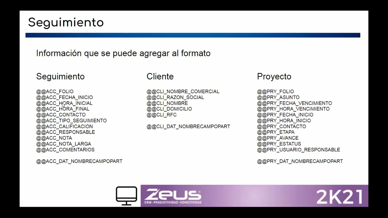 Si necesitas hacer un formato en HTML para las notificaciones de Cotizaciones, Tareas, Seguimientos, Servicios anticipados o Cualquier tipo de proyecto (Oportunidades, Ordenes de servicio, etc.), aquí te dejo una liga para que descargues un comprimido que contiene los formatos generales usados en la plataforma y una lista de los campos que, aunque algunos de ellos no vienen en el formato, los puedes utilizar para hacerlos más personalizados: