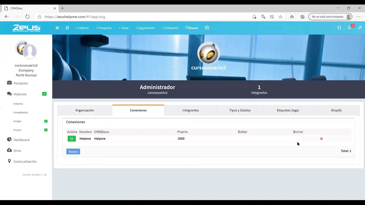 Esta es la vista que tendrá el cliente que asignemos como cliente B2B desde la pestaña de la Organización.