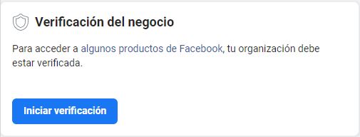 Al intentar verificar tu empresa en Meta, normalmente debería aparecer un botón como este: