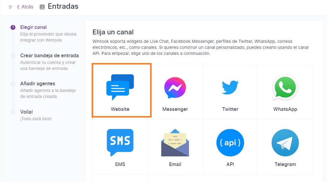 ¿Cómo crear un canal de sitio web en Wintook?